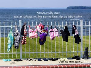 Last week – I was having flashbacks about our SPP friend. To curb the sadness, I decided to wear the unique scarf she had given each of us several years ago (for Christmas.) Ironically, while I was out shopping, I stumbled upon the exact scarf hanging on the rack. There was only one. I knew she had originally purchased it from a small boutique in Kitty Hawk, NC and was surprised to see the scarf sold in my hometown. I was convinced that my discovery was a sign from above and our dear friend was smiling upon us; consequent