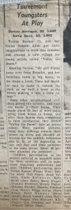 As other children in the neighborhood watched our progress, they became fascinated by our creation. Eventually, they asked if they, too, could be a part of it. Before we knew it, a dozen kids were participating – each with his or her own “residence.” We connected each location with paths lined by stones, and every “home” had its own garden with flowers and small bushes. On a daily basis, the area was filled with the sound of laughter and children at play. We called our new town – Valley-Go-Boom. Please don’t ask me why or what inspired that unusual name – because I cannot — for the life of me — recall. However, I do remember the many years of creative play this masterpiece of packing crates and imagination gave to a group of kids who enjoyed spending time together.